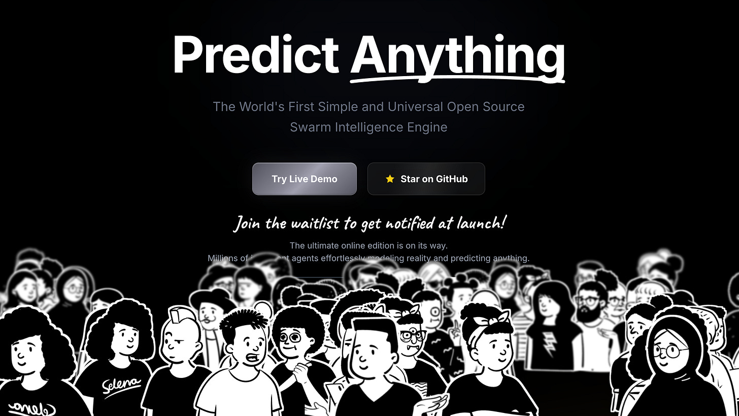 It is a swarm intelligence engine that ingests real-world data, spawns thousands of autonomous AI agents, gives them unique backstories, biases, and memories, and unleashes them on simulated Twitter and Reddit platforms to watch them argue.