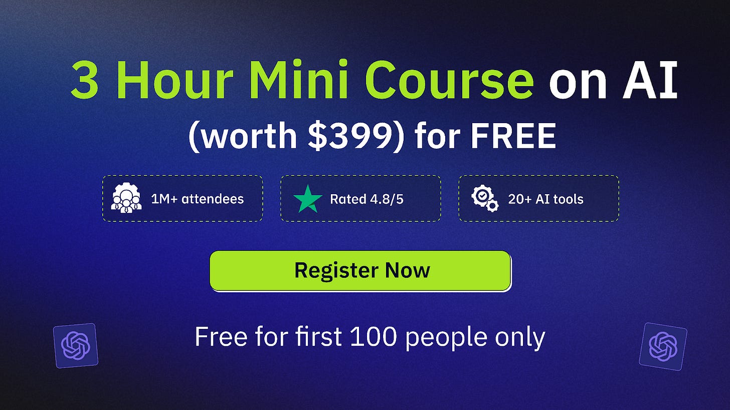 This FREE 3-hour Mini Course (valued at $399) offers actionable insights and hands-on techniques to integrate AI into your core operations for measurable impact.