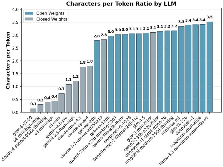 • Nous Research just proved open-source burns 1.5-4× more tokens.