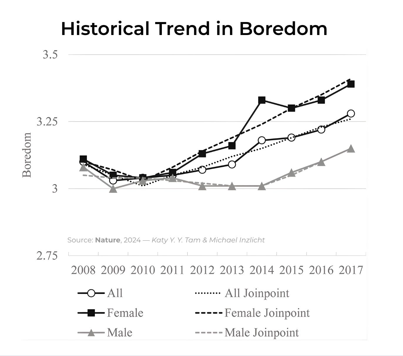 Iâm looking at the research right now. It highlights a âconcerning rise in boredomâ from 2009 to 2020.