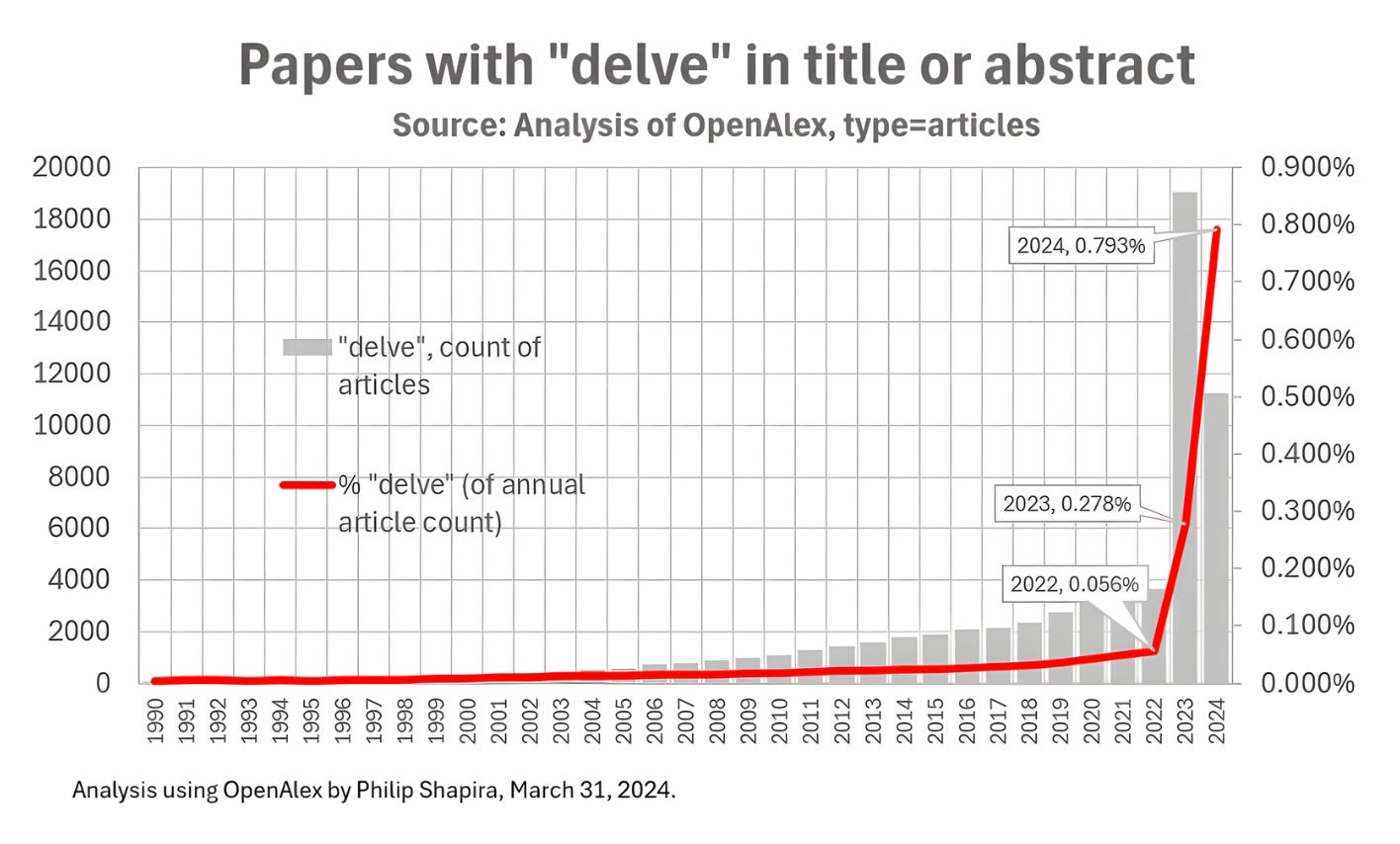 A recent linguistic analysis showed that usage of the word “delve” has skyrocketed since the release of ChatGPT.